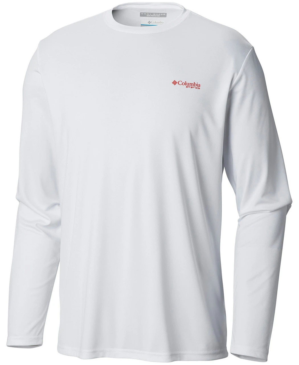 The Columbia PFG Terminal Tackle Americana Fish Long Sleeve Shirt wicks perspiration away from your skin and helps it evaporate quicker for all-day comfort. The signature built-in Omni-Shade UPF 50 protects you from harmful UV rays during long hours on the water.