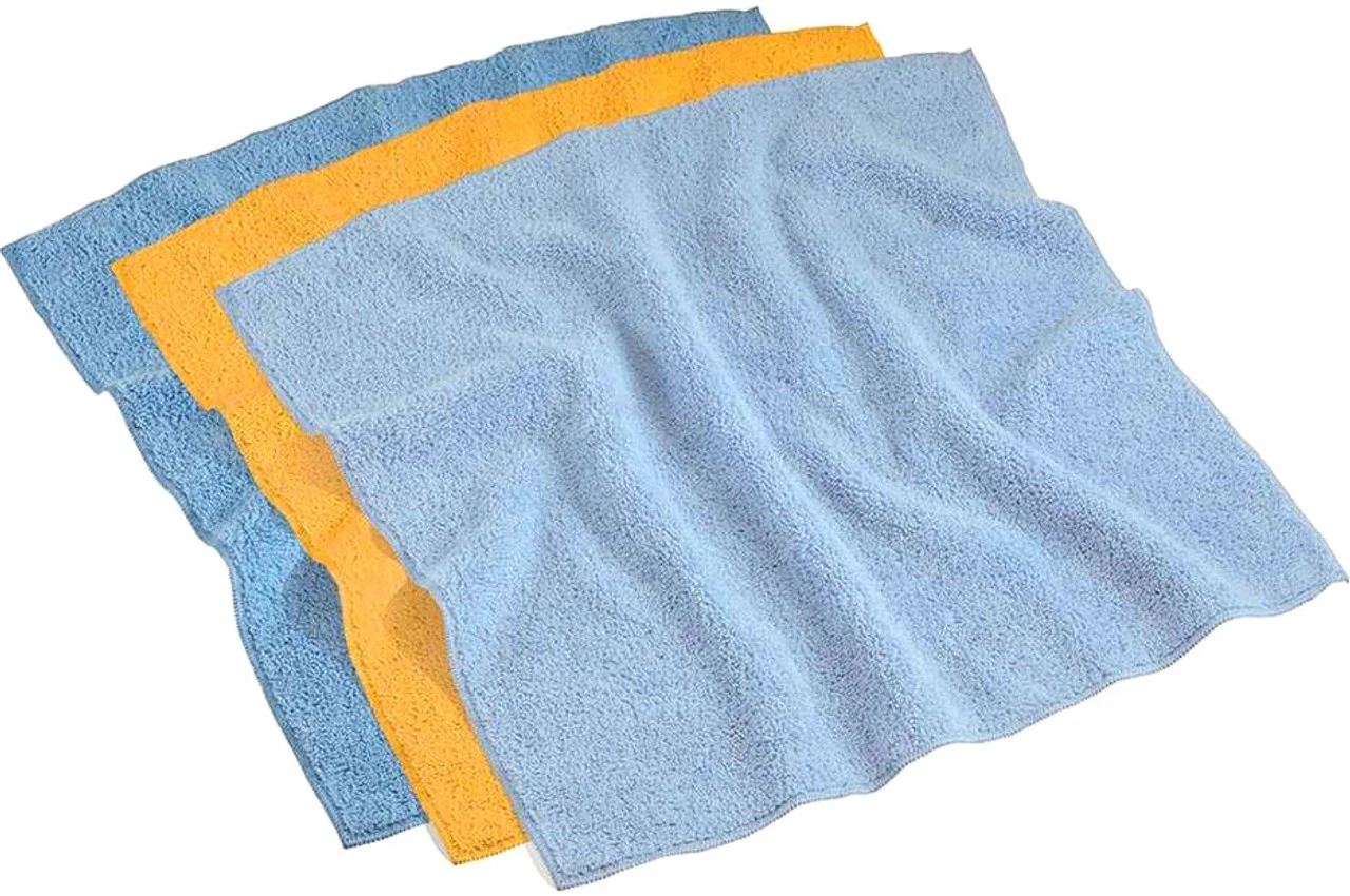 Each towel in the Shurhold Microfiber Towels Variety Pack serves a different purpose. The dark blue towel is super soft for shining and polishing; the yellow towel is extra strong for cleaning and washing; the light blue towel is lint free for wiping and cleaning mirrors and glass.