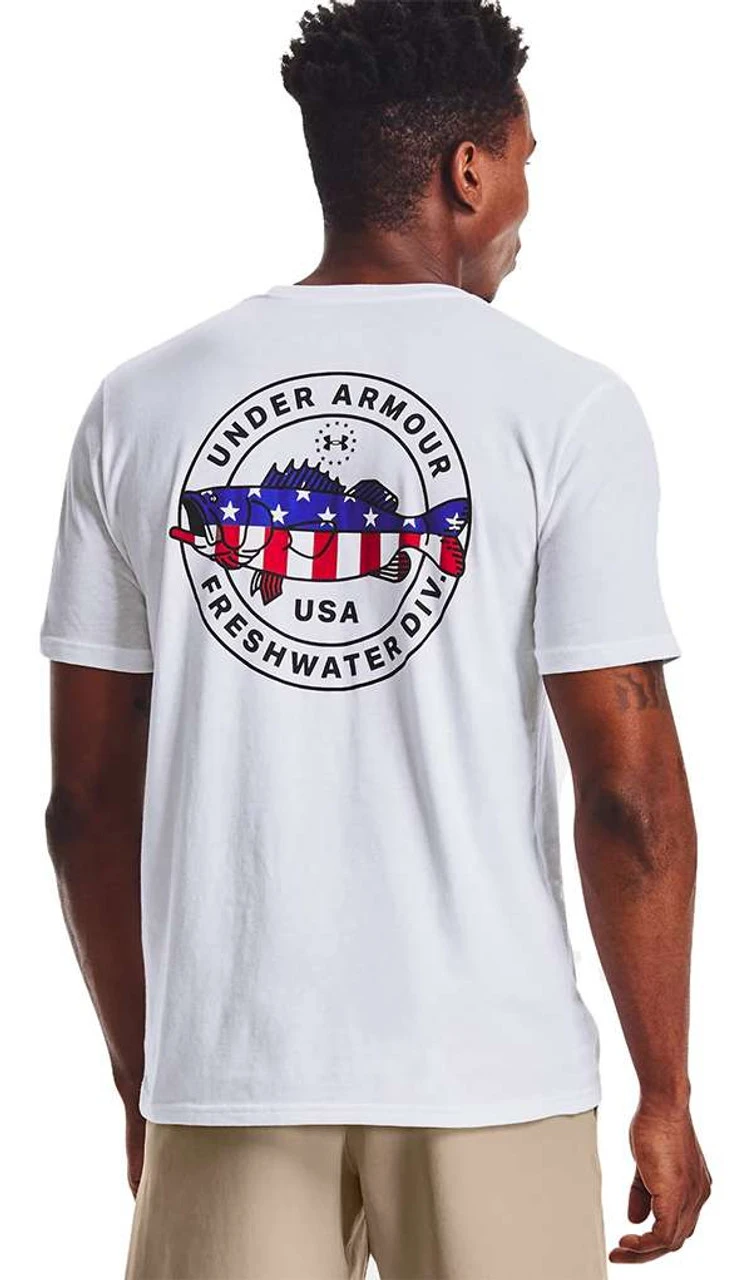 Under Armour Freedom Bass T-Shirts are short sleeve shirts made for being out on the water and are inspired by the freedom of the sea. These tees are made with a soft cotton-blend fabric for any angler’s all day comfort. With unique Under Armour American flag bass design across the back these tees will stand out while you’re on the water or your favorite freshwater fishing spot.